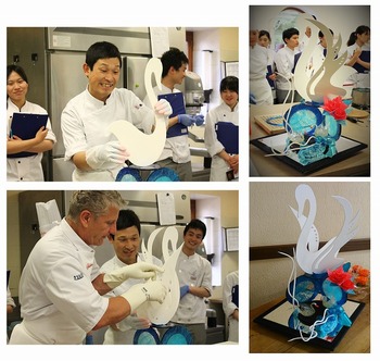 また製菓ではキャメラ先生の「Sucre d'art(砂糖細工)」の授業がありました。白鳥の作品を作って見せてくれましたが、素晴らしいですね。のちに学生達が班ごとにそれぞれの作品を作る予定です。楽しみですね。