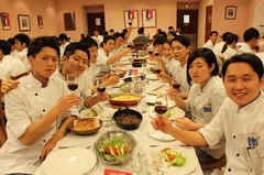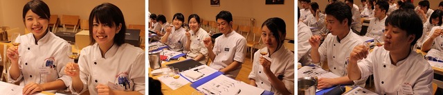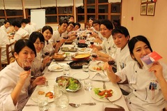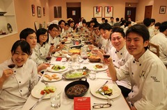 調理の実習では、エキップの中でさらに小さなチームを作り、それぞれ前菜、魚料理、肉料理などを担当します。2セリからは、各担当2品ずつ料理を提供しなければなりません。難しさが増しますが、上手く行った時の充実感もひとしおです!
