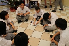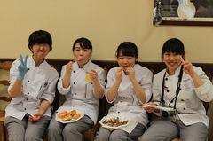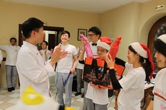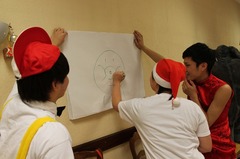 食事のあとはみんなでゲームをしましたよ。クリスマス会委員の皆さんが頑張ってくれ、ゲームを考えてくれたのでみんなで楽しむことができました。いつもの実習班を少し分解して調理と製菓の合同チームにして戦い、成績の良かったチームには商品もありました。