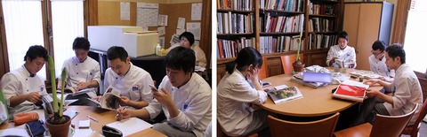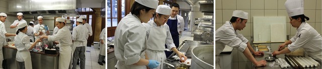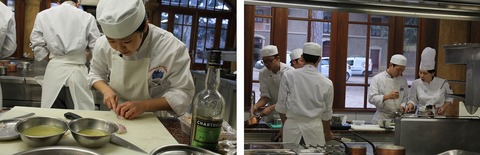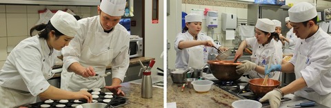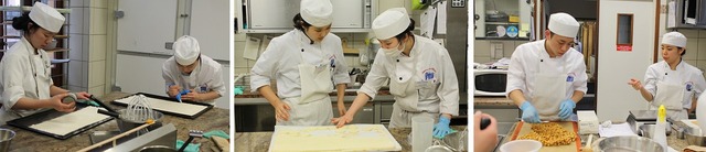 調理、製菓の学生たちは、学期末の卒業記念食事会「ムニュ・スペシオ」に向けた話し合いや試作を始めています。学生たちは先生や同じチームのメンバーと話し合って、一からオリジナルの料理やお菓子を考えていきます。