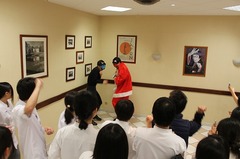 そして豆まきもおこなわれましたよ!鬼役をやってくれた学生が2人(赤鬼役はなぜかサンタ衣装)、その鬼に向かって豆を投げました。日本にいても大人になったらなかなか豆まきをする機会もないと思うのですが、今回は楽しく豆まきができましたね。