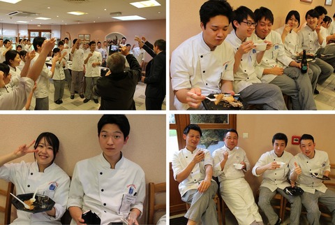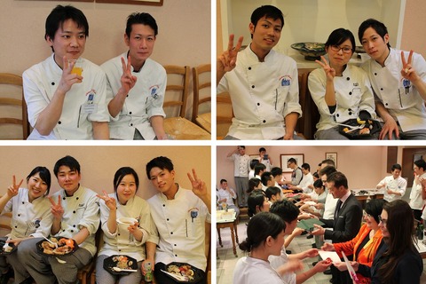 本科修了式の後、学生たちと先生方によるビュッフェパーティーが催されました。5ヵ月間お世話になったフランス人の先生方に、学生たちが和食を含む料理を作りました。