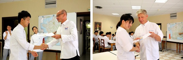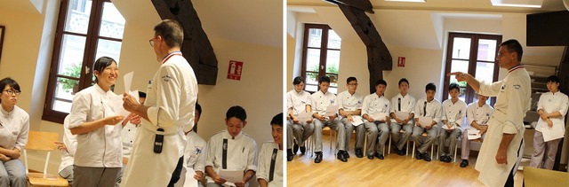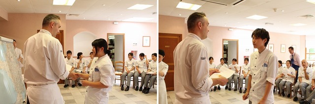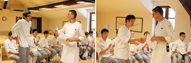 学生がシェフを抱きしめたり、ビズBiseをしたりと、研修発表はとても盛り上がりました!