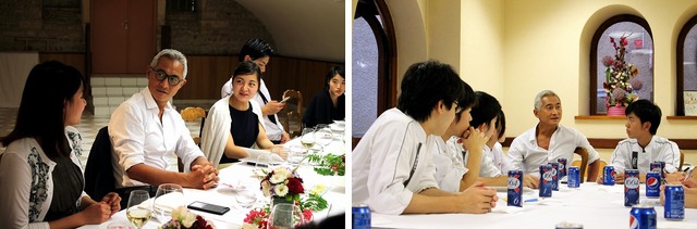 辻校長がクリヨン席(お客さん)に入り、食事中に学生と話しながら、今食べている料理はどんな学生が作ったかということを聞いて、感想として「性格が料理に表れていると話されていました。
