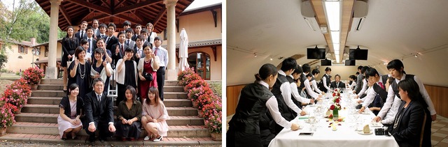 食事が終わった後、調理や製菓を担当した班、セルヴィスを担当した班全員がレストランに来て挨拶をしました。