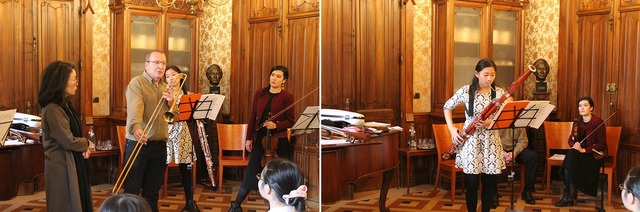 先週19日(金)は、リヨンのオペラ座などで活動する音楽家の方々が来校してくださり、ミニコンサートを催してくださいました。