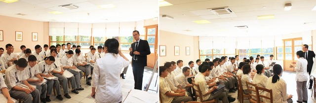ムニュ・スペシオは料理・お菓子を作るだけではなく、それらのサーヴィスもとても大事なので、皆さんは真剣に聞いていました。