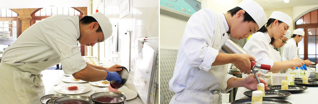 調理と製菓が力を合わせて、前菜からデザートまで、個性あふれる豪華なフルコースを作りました!