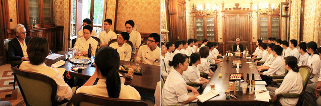 夕食後には、校長による茶話会も開かれ、多くの研究生が参加、料理やお菓子についてのコメントやアドヴァイスをもらいました。