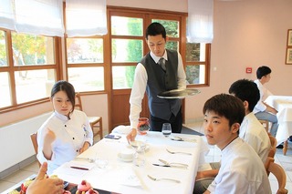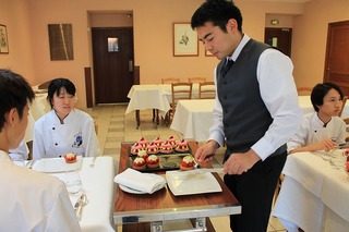 さらにサービスの実習もあります。あまり経験のないことなのでなかなか大変でした。ある研究生は「初めてなので、間違ってもいいから積極的にいきます。」と意気込みを見せていました。