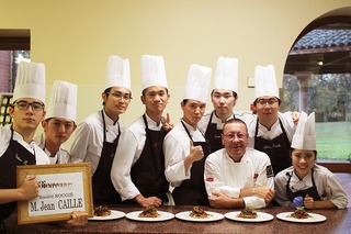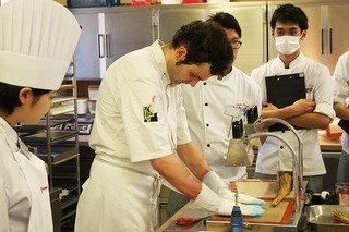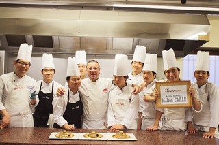 調理班には12月4日、フォアグラのルジエ社専属講師ジャン・カイエ氏が講師として来てくださいました。研究生はフォアグラについての説明受けました。カイエ氏はフォアグラの二つの料理のデモンストレーションを研究生の前で行いました。