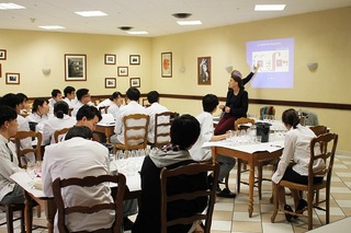 ワイン講座は先日ボジョレワイン見学に行ったシカレックス社からピレ氏が外来講師として来てくださいました。ボジョレワインの作り方、味についての説明をしました。