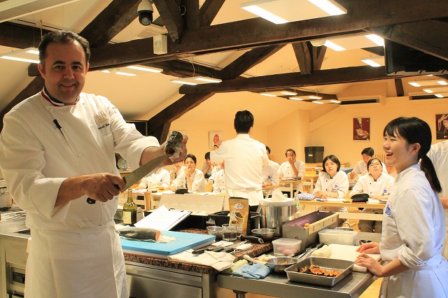 外来講習とはその名の通り、フランス各地のレストランやパティスリーで活躍されているシェフや従業員の方にフランス校にお越しいただき、お店の料理やお菓子を実際に作っていただく講習授業です。