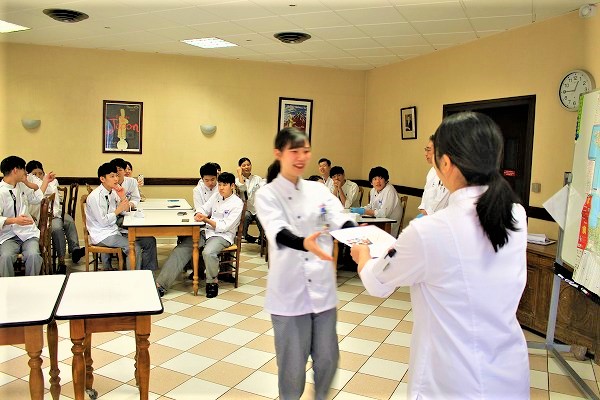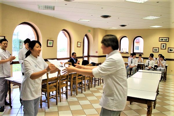 ※写真はエスコフィエ校の様子ですが、レクレール校でも研修先発表は行われました。