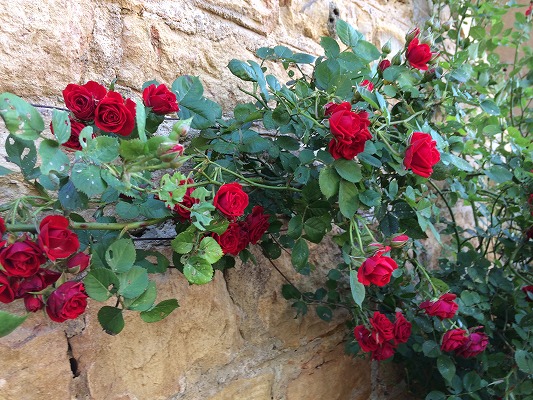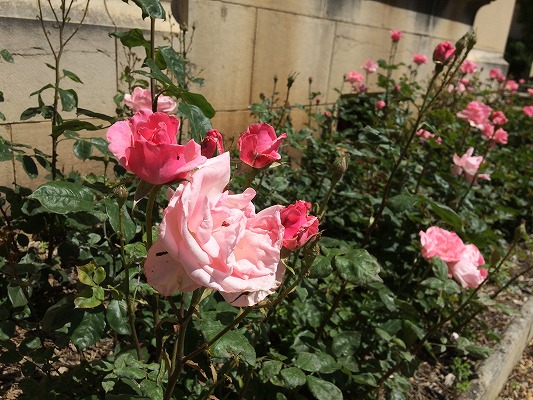 シャトーの花壇に目を移すと、すでにツツジの時期は終わり、いまはバラが咲き誇っています。