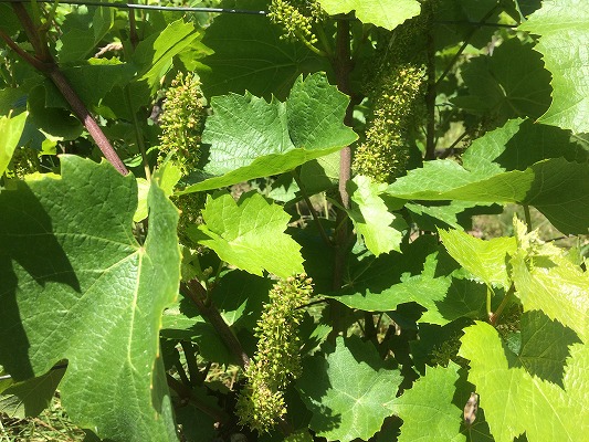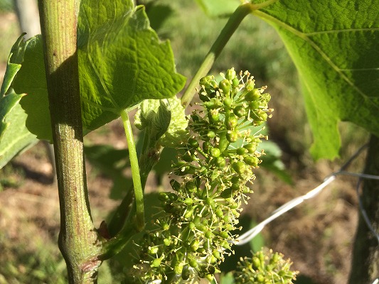 控えめで目立たないですが、レクレール校周辺は今、ブドウの花もひそかに満開です。