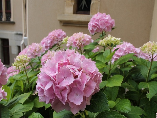 ですが、レクレール校の玄関の花壇のアジサイだけは、雨を待ちわびていたかのように、毎日どんどん咲いています。