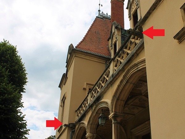 シャトーのテラスの両端の付け根の部分に、ニョキっと飛び出ているものがあるのが分かりますか?