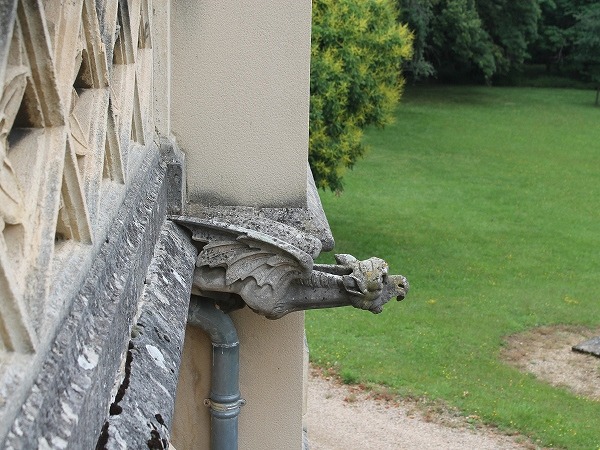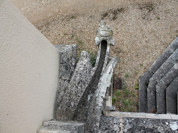シャトーに降り注ぐ雨水の一部は、雨どいを伝い、最終的にはこのガルグイユの口から吐き出されます。