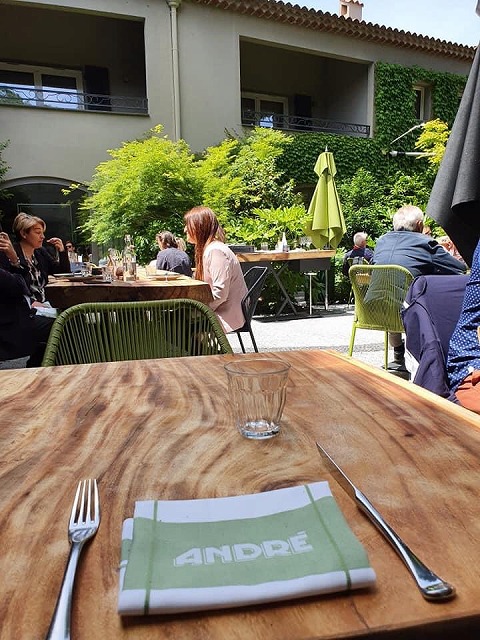 今回はテラス営業解禁後にフランス校職員が訪れたビストロ「André アンドレ」の様子をご紹介します。こちらは南仏Valanceヴァランスにあるミシュランガイド3つ星のレストラン「Maison Picメゾン・ピック」に併設されているビストロです。ピックはフランスで三ツ星レストラン唯一の女性シェフAnne-Sophie Picアンヌ-ソフィ・ピック氏のレストラン。本店であるピックの営業開始は6月9日とまだもう少し先ですが、テラス席のあるビストロは一足先にオープンしました。
