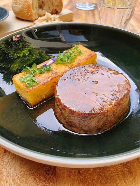 仔羊肩肉のコンフィとポレンタ。南仏では羊肉がよく食べられます。
