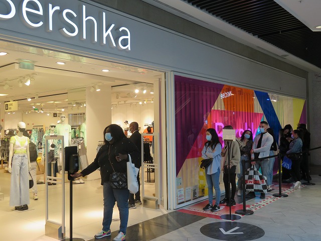 さて、営業再開された商業施設を覗いてみました。マスク着用は義務、店内の広さによって規定された入店可能人数が制限ありますのでお店の外で行列を作って待っている人たちも見られます。