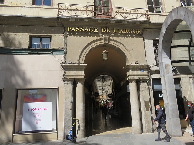 リヨン、ベルクール広場近くのアーケード商店街です。小さなお店も頑張って営業しています!