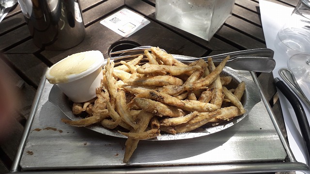 小魚のフリチュールです。アイオリ(ニンニク入りマヨネーズのようなもの)が添えられています。