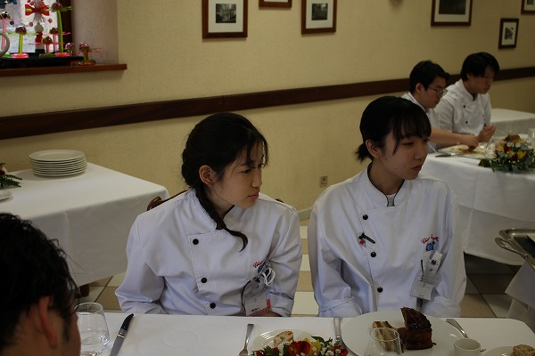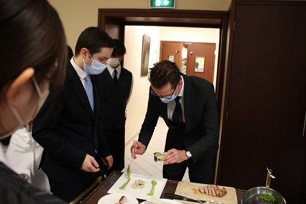 client(クリヨン-客)班は次回サービス班になった時のことを考え、仲間がやっているデクパージュをしっかりと見て学びます。