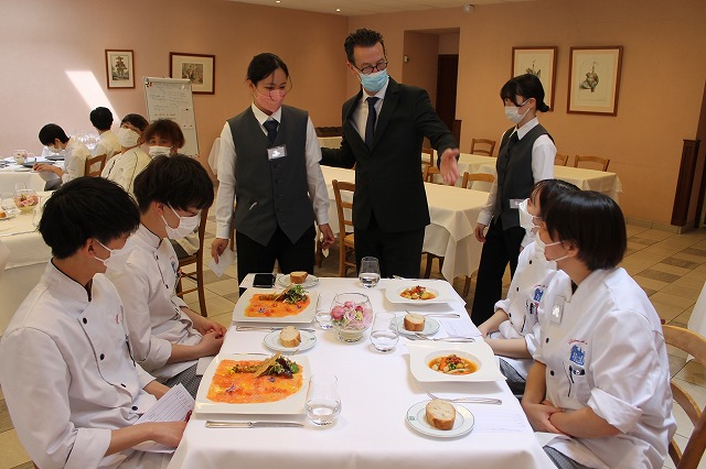 サービスの授業は実際にサービスに携わる研究生がほとんどです。アルバイトで経験したことがある人は少しわかることもあると思いますが、こちらもフランス語で授業は進み、フランス式サービスを習うのではじめはわからないことがほとんどですが、フランス校のサービスの授業を受けて将来サービスの道に進んだ卒業生もいるくらいですので、興味深い授業になるはずです。頑張りましょう!