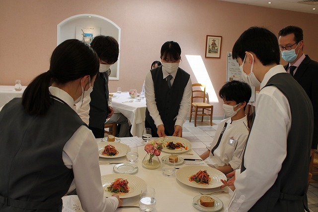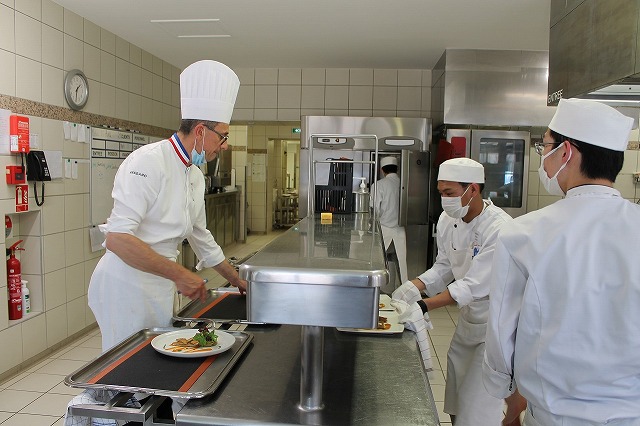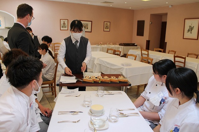 全員が一回は実習を体験した実習ですが、感想はいかがでしょうか。「動いていたらあっという間に終わってしまった感じです」「先生は優しくて楽しくできました!」「めっちゃ怒られました(汗)。次も頑張ります!」「サービスもよくわからないで始めましたが楽しいです」など、初めての経験が多い中、次も頑張ろう!と思えたようですよ!この先、外来講師による「外来講習」やワイン・フランス語・食文化の中から選択して受講する「オプション授業」なども始まります。盛りだくさんのフランス校生活、まだまだ続きます!