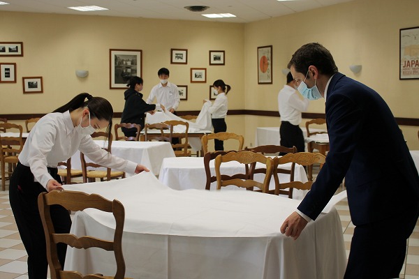フランス人の先生方にフランス語で接客する機会もあるので、サーヴィス実習は実践的にフランス語を学ぶ機会にもなります。