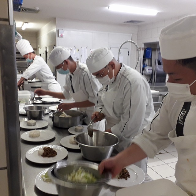 シャトーで過ごしている皆さんは、休み明けに向けて勉強をしているのでしょうか。敷地内にはあまり人気を感じません。夏休み中も希望者は朝昼晩食事をとることができますので、今日も昼食時には希望者が集まりました。事前に希望者の中からお当番が決められ、職員と一緒に食事準備をします。
