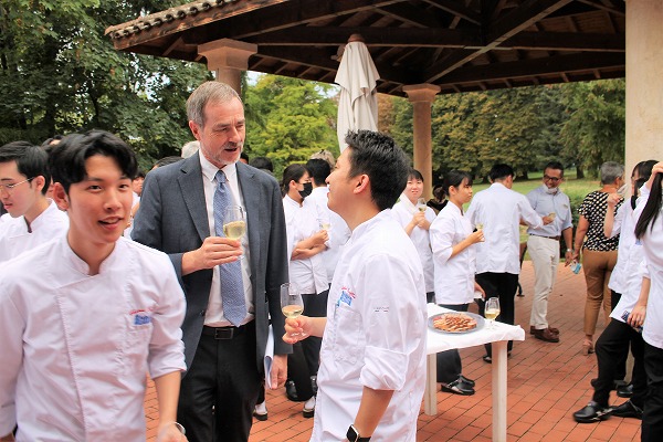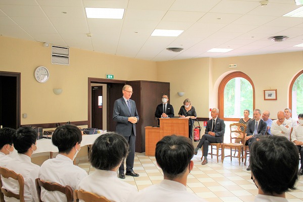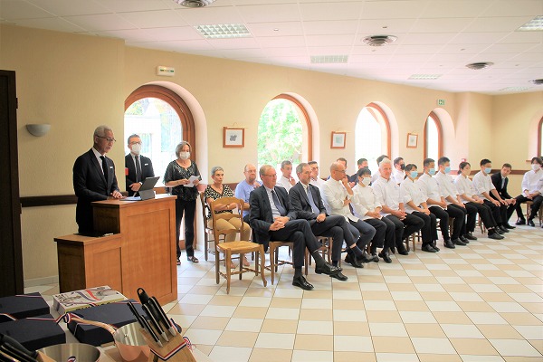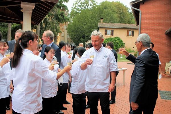そして、エスコフィエ校でもセレモニーが行われました。校長先生のお話をうかがったり、各賞の授与式が行われたり...これでシャトー生活も終わりという実感がわいてきたでしょうか。その後、皆で乾杯をしました。研究生の皆さんのフランス生活も、これで一区切りという感じがしたのではないでしょうか。(レクレール校のセレモニーの様子はこちらをご覧ください。)