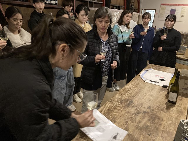 ワインの本場と言われるフランスで、実際に試飲をして学ぶフランスワインの授業は、インパクトもあり記憶に残りやすいのではないでしょうか。フランス校ならでは、という授業の一つのワイン醸造所見学でした。