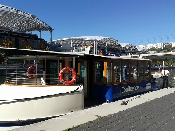 この水上バスはVaporettoヴァポレットと呼ばれ、リヨン9区のVaiseヴェーズ地区と、再開発によってリヨンの新たな人気スポットとなったConfluenceコンフリュアンス地区を結んでいます。