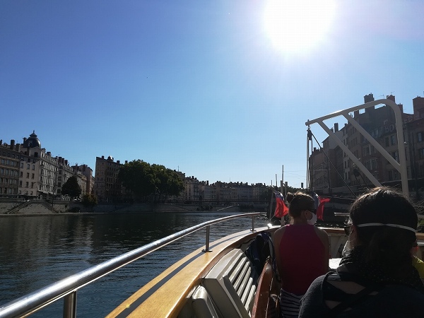 普段目にしているリヨンの町並みも、ソーヌ川から見ると新鮮に映る。