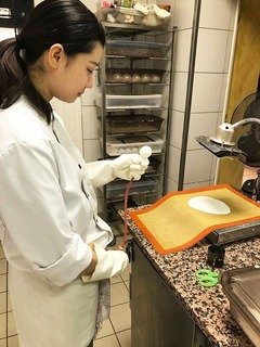 研修も残り僅かですが、毎日緊張しながらもコミュニケーションの大事さを忘れずに確実に仕事をこなしていきたいです。帰国してからはパティシエとして働きたいですが、人に一声かけることも勇気がいる人見知りなので、ヴァンドゥーズ(販売員)やサーヴィスをする機会があれば、色んな人と関わって苦手意識を無くしていきたいと思っています。また、様々な目線からガトーを作ったり見たり食べたりしてこれからもずっと勉強していきたいです。