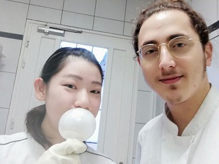 パティスリーの研修生は私だけで、先輩は2人います。一緒に仕込みをすることもあって、最近ではちょっとした雑談もしたり、今でもフランス語を話すときは冷や汗かきますが、少しでも仕事以外の会話が出来るのは嬉しいです。あと、どんな人でも恋愛話は盛り上がります。スーシェフは日本人の友人がいるらしく少し日本語が話せてよく絡んできます。日本語を教えると喜びます。