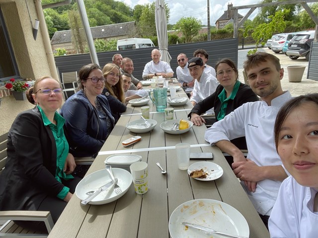 私の研修先はかつてタラ漁で栄えた漁港Fécampから車で10分強のところにあるレストランです。ここではレストランで育てているハーブや山で採れた野花を料理に多く使っています。厨房内は比較的狭いですが、土日にはそれぞれ約20~60名くらいのお客様が来られます。客層はファミリー層から高齢の方々まで幅広いです。