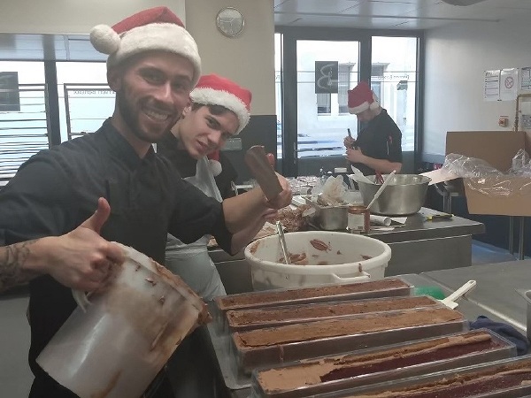 私の研修先はフランシュ=コンテFranche-comté地方のドールDoleという運河の町にあります。パティシエは私を含めて10人で、お菓子部門Pâtisserie、チョコレート部門Chocolaterie、製パン部門Boulangerieに分かれて毎日たくさんのお菓子を作っています。