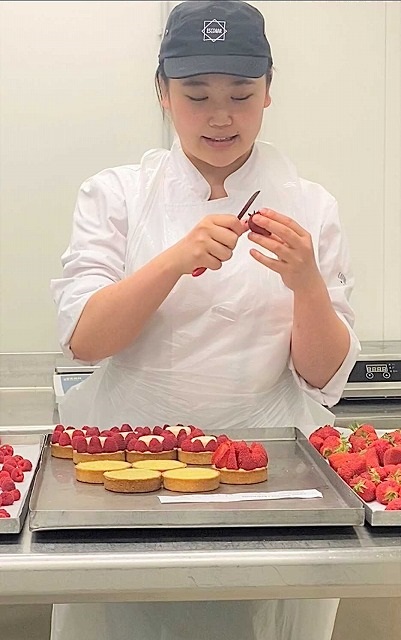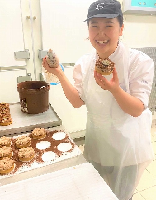 実際に現場の中に入ることで作業スピードや流れを学校とは違った角度で見て、体験することができたので日本での仕事に役立てられると思いました。 また、ガトーやフルーツの試食を積極的に進めてくれるので、味の組み合わせ や変化を学ぶことができました! 研修に出る前のイメージは個人で黙々とする作業が多いと思っていましたが、一度にたくさんのガトーを作るため二人で作業を行ったり、サポートしつつお話をしてくれたりと、実際はとても楽しみながら働いています。研修に入ってからあたる壁は言語だと思います。 私は初めの頃に会話で間違えるのが怖くてうまく伝わらないことがありました。けれど、知っている単語を組み合わせると自然と会話ができると知り、自らコミュニケーションを取れるようになりました!