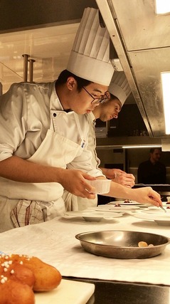 今はガルドマンジェで働いています。アミューズ、オードブルの仕込み、盛り付けをしています。アミューズ、オードブルは種類が多く10種類くらいはあるので、覚えるまではとても大変でした。細かい作業がとても多いのですが、サービス中はその中でもシェフの声を聞き逃さないようにとても集中します。