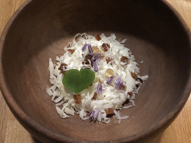 今回いただいたコース料理は、レストランの名前であるMutinerie=反乱という名の通り、料理の中での強い酸味や、主張の強い香草類の香りなどは1歩間違えれば美味しい料理からは外れてしまいそうに思えます。しかし、シェフの巧みなバランス感でその料理は調和がとれていました。
