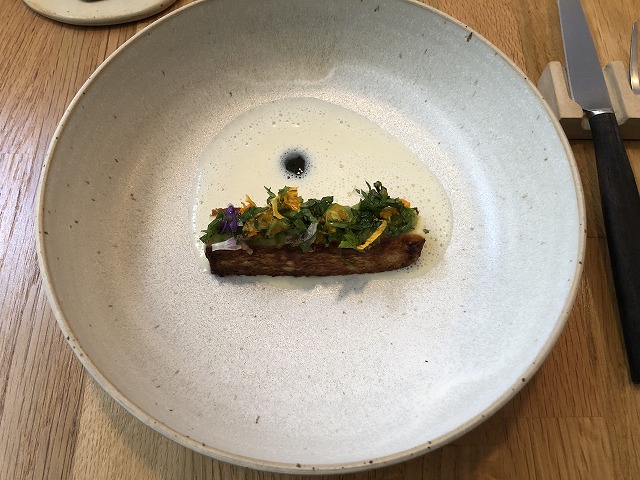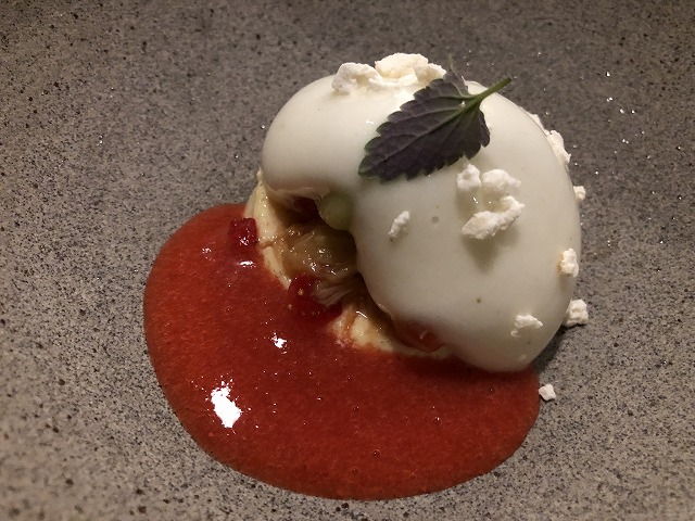 ミントの濃縮された香りの酸味の効いたピュレが1点おいてあり、それがいいアクセントになっていました。