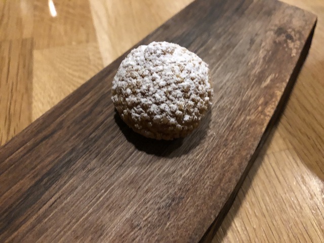 お茶菓子として最後に出た、プラリネと味噌を使ったクリームを詰めたシュークリームです。