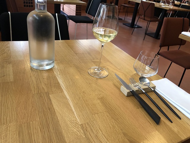 レストラン内はレンガや木目が見えるテーブルなどのインテリアでヴィンテージ感のある内装で纏められています。テーブルセッティングもシンプルなものになっています。