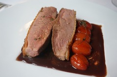Poitrine d'une Cannette de Challans aux épices douces,Tomates coeur de pigeon caramélisées en Aigre-Doux