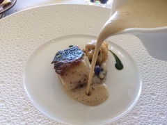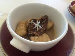 ロティされた乳飲み子羊、香草の入ったニョッキとモリーユ茸、空豆のジュ