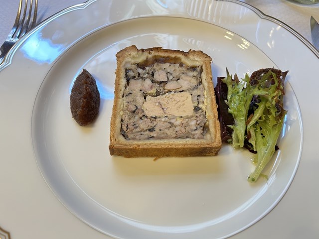 こちらは、人気メニューの1つでもあるパテ・アン・クルート。ヴィオラ氏は2009年のパテ・アン・クルート世界大会の優勝者でもあります。リ・ド・ヴォ―(子牛の胸腺)と、中央にはフォワ・グラが綺麗に配置された絶品の一品です。シェフのスぺシャリテなだけあって、メニュー表の一番上に記載されていました。
